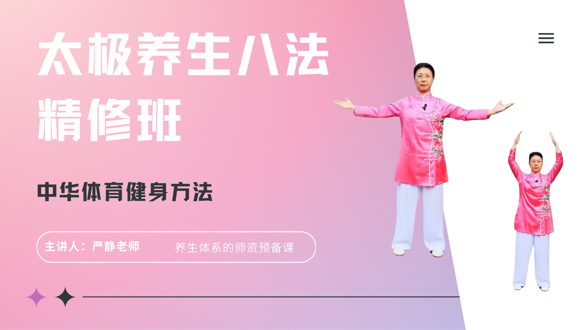 邀请您身边的朋友一起学习!讲解太极养生八法的每势动作的核心要领、健身原理,锻炼方法